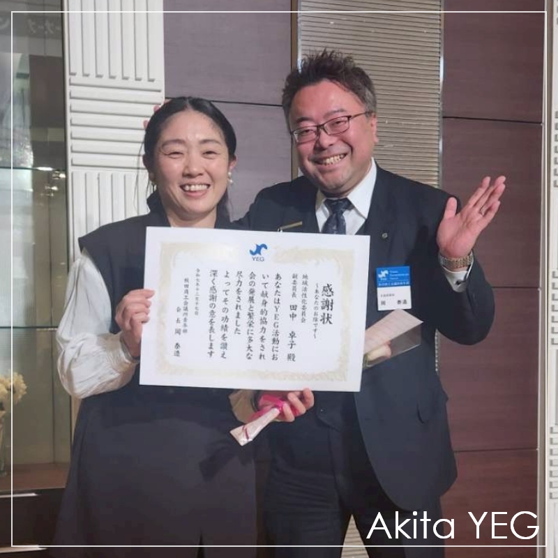 今回いただいた学びや、全国・県内のネットワークを、今後の秋田YEGの活動、そして自社の事業にしっかりと活かしてまいります!