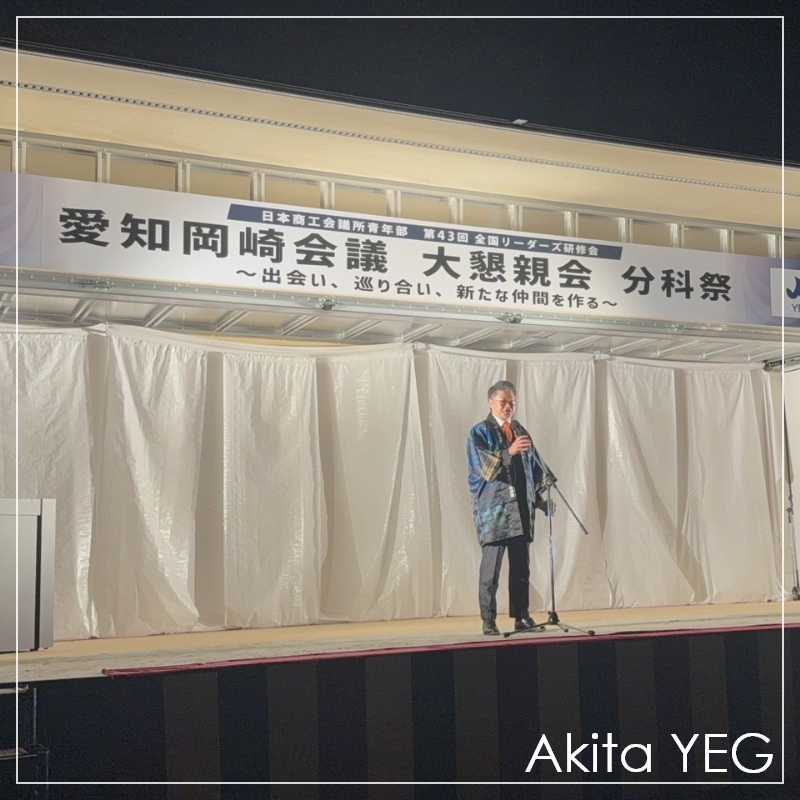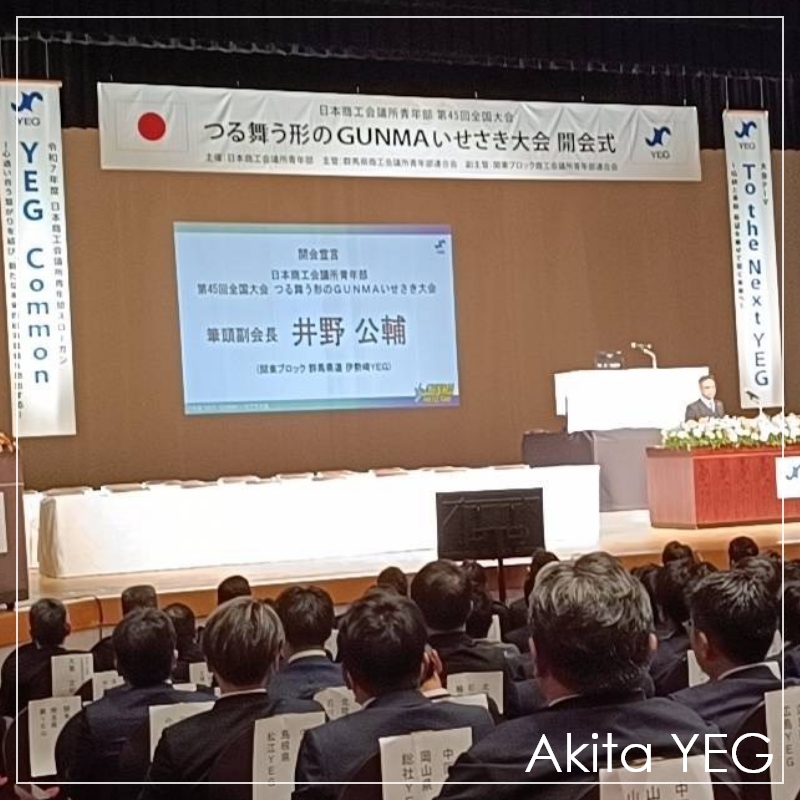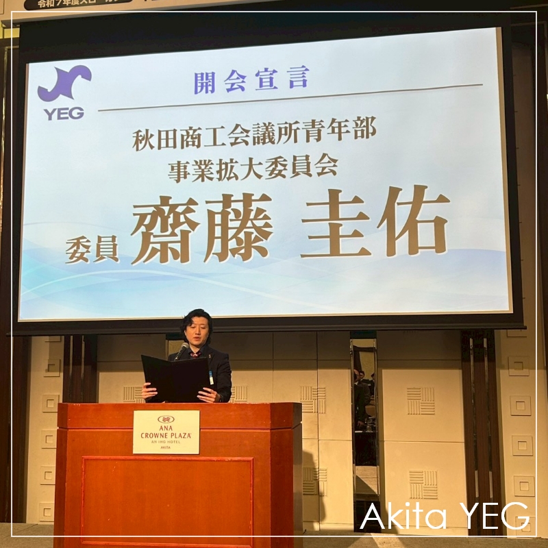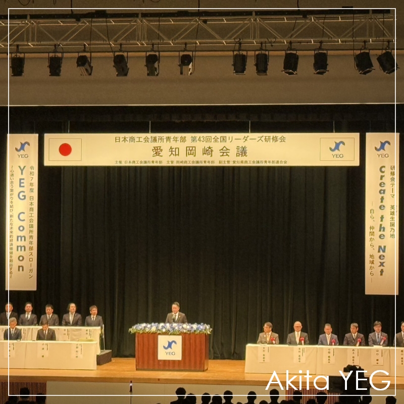 令和7年度 東北ブロックYEGの会長を務める、我らが秋田県連の武田喜胤君(大館YEG)の勇姿を拝みつつ、圧倒的な登録者数に尊敬の念を抱きつつ、すでに次年度の福島そうま大会が待ち遠しくなるような、本当に素晴らしい大会でした。